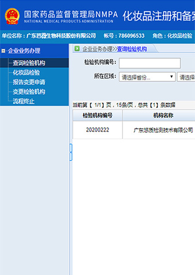 化妝品常規(guī)檢測請?zhí)顚懳宜尽拔袦y試協(xié)議書”,申請單隨樣品一同送檢。非特備案檢驗(yàn)請?jiān)趪摇痘瘖y品注冊和備案檢驗(yàn)信息管理系統(tǒng)》中填入產(chǎn)品的實(shí)際信息和檢測項(xiàng)目,選擇檢驗(yàn)機(jī)構(gòu)為“廣東悠質(zhì)檢測技術(shù)有限公司”。
